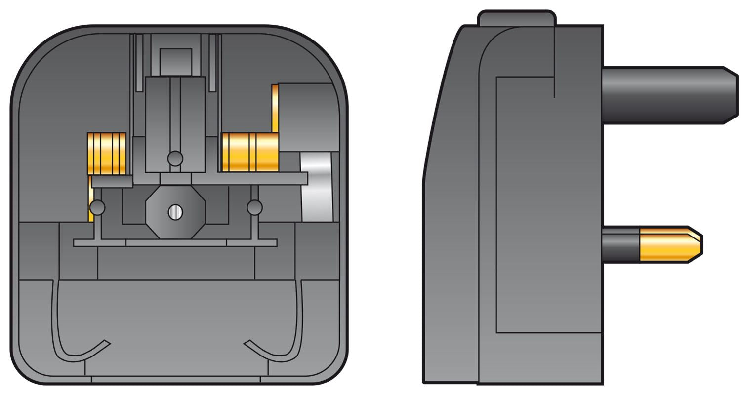 A plug adaptor that quickly and easily converts a 2-pin Euro plug to a standard 3-pin British plug in a Clamp-style adapter.