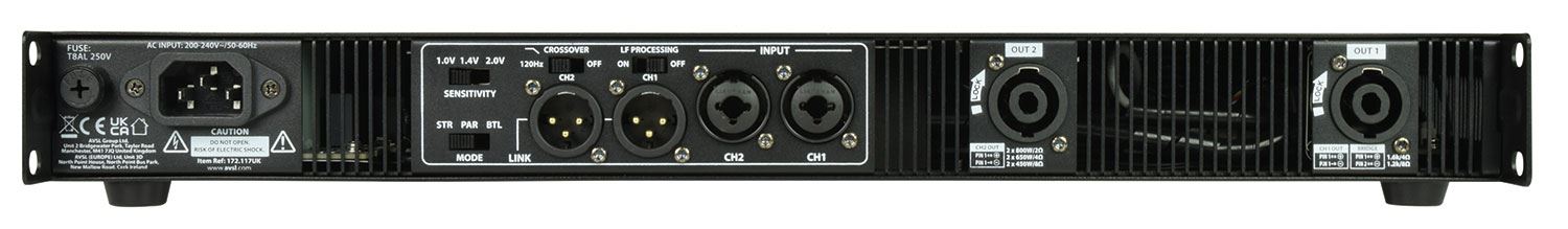 Lightweight power amplifiers in a 19" rack-mountable housing for generating high sound pressure levels in medium to large sound reinforcement systems. H-series amplifiers employ a new hybrid class-H architecture, which combines the streamlined efficiency of a digitally controlled power section design with the power delivery and stability of a professional class-H output stage. Comprehensive internal protection monitors any thermal or overload conditions, automatically mutes at power on/off and provides active inrush limiting. A digital display continually shows the supply voltage, internal temperature and output level. A fully balanced signal path has 3 switchable input sensitivity levels to match different audio sources and the amplifier section can be set to operate in Stereo, Parallel or Bridge modes. A switchable 120Hz low-pass filter can be selected for use with subwoofers, avoiding the need for a separate crossover and saving additional expense and rack space. Speaker outputs can be connected using 1 or 2 Speakon leads as required. H-series amplifiers provide immediate and dynamic power on demand for sound contractors and PA installers that need dependable service with optimum sound quality.