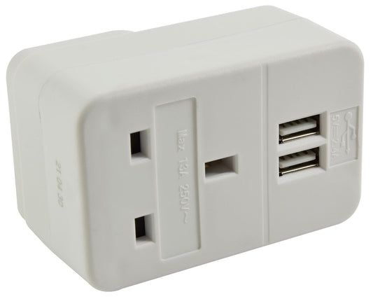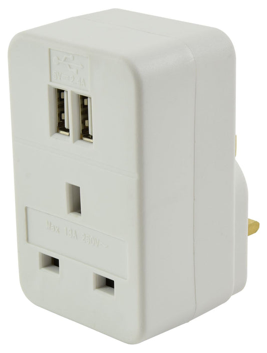 Mercury Plug Through UK Mains Charger with Dual USB Ports 2.4A for Smartphone / Tablet