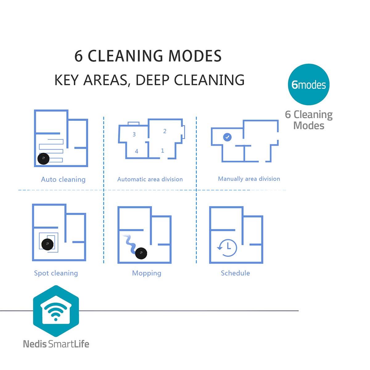 • Automatically scans and divides area in separate rooms, all shown in the free Nedis SmartLife app