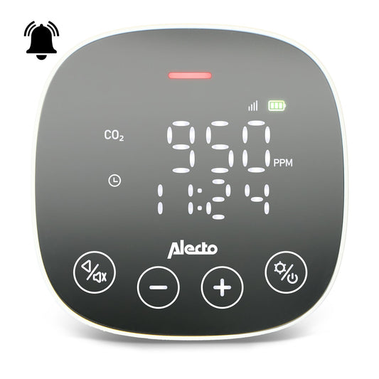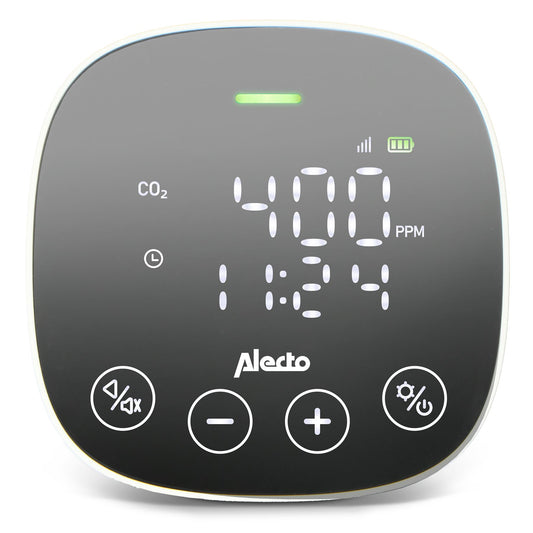Alecto AQ30 LCD Air Quality Monitor Meter for CO2, Humidity with NDIR sensor | EN 61326-1:2013 ISO | White