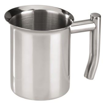 - High gloss polished, stainless steel jug with a cylindrical design and a volume of 400 ml