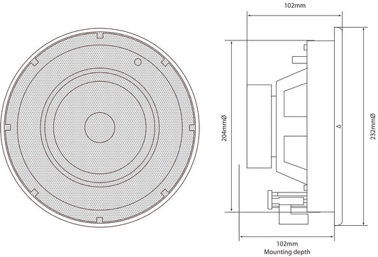 Adastra 0D6-W8 Water Resistant Ceiling Speaker, 16.5cm (6.5"), 100W max, 8 ohms, White (Pair)