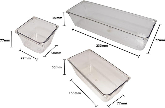 6 Pcs Draw Organiser Box Desk Drawer Fridge Trays Makeup Storage Plastic Divider