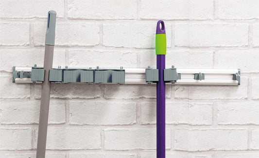 Wall Mounted 5 Rack Kitchen Storage Mop Broom Holder Organiser Brush Hanger Hook