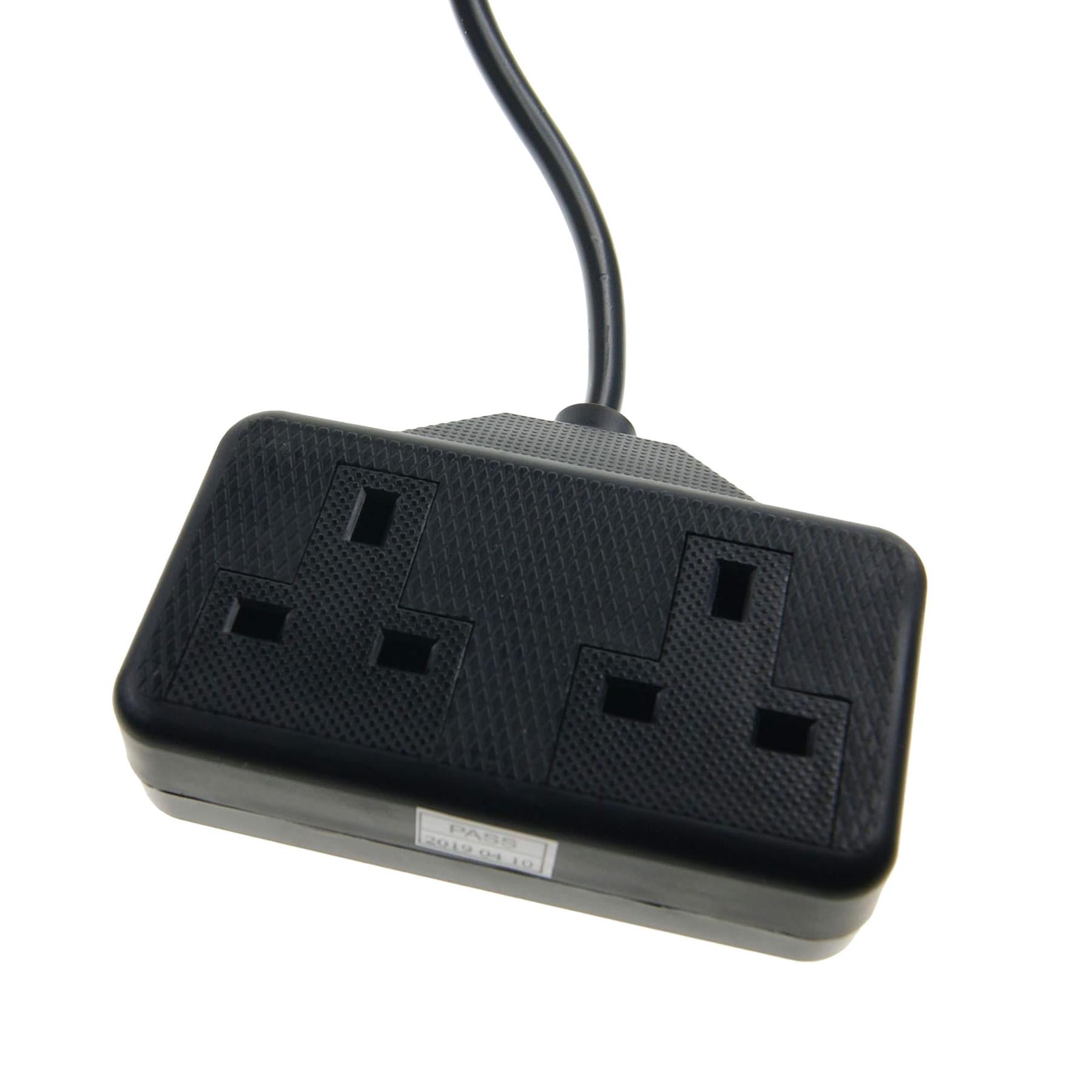 Euro EU French 0.8m Schuko Plug to 2 Gang Black 13A UK Socket Hybrid Generator Adapter Fly Lead for Caravan Motor Home