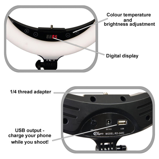 Ex-Pro Ring Light Photography 5500K 90+ CRI 36W (200w EQ) SMD LED 12" [Social Media Package]