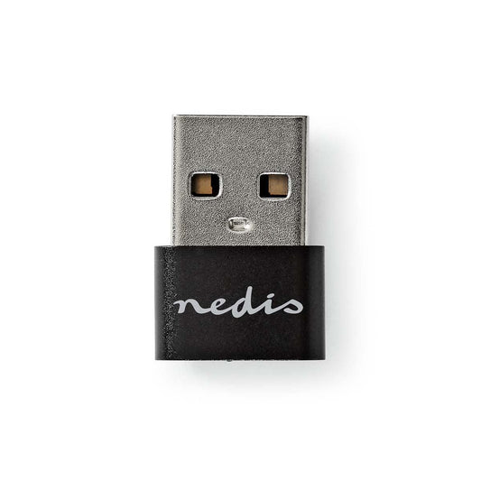 Nedis USB-A Adapter | USB 2.0 | USB-A Male | USB-C™ Female | 480 Mbps | Round | Nickel Plated | Black | Box