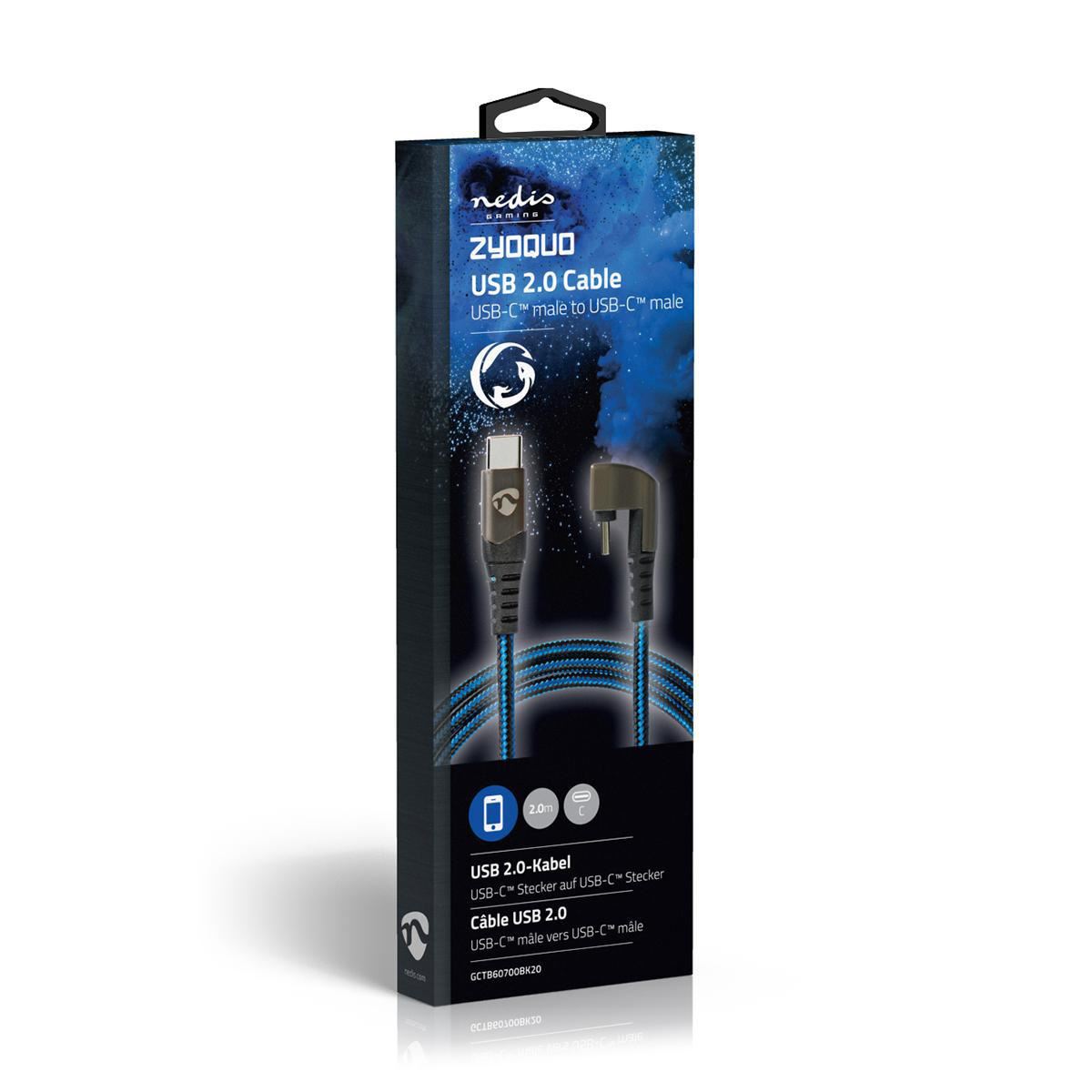 Nedis USB Cable | USB 2.0 | USB-C™ Male | USB-C™ Male | 480 Mbps | Gold Plated | 2.00 m | Round | Braided / Nylon | Black / Blue | Cover Window Box
