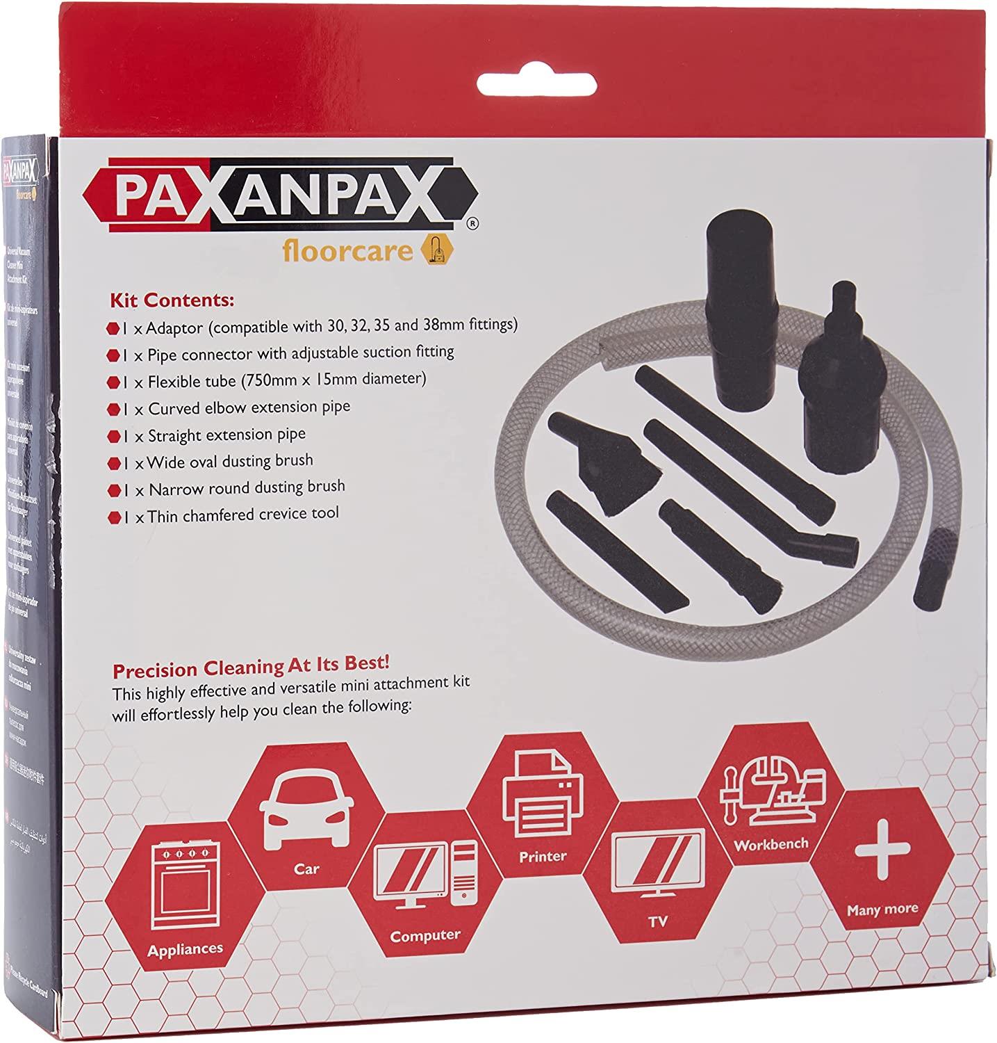 Ideal for cleaning delicate, small and valuable articles and Intricate jobs such as computer keyboards Kit includes 1 Adaptor, 1 Plastic Hose, 3 Small Nozzles, 2 Small Brushes, 30mm, 32mm, 35mm and 38mm fittings Simply fix the adaptor to the end of the vacuum cleaner rod Attach the plastic tube to the adaptor Add the required nozzle or brush to suit the cleaning job.