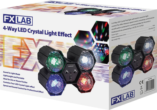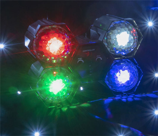 4 Way Multi-Coloured LED Crystal Effect Disco/Party Pod Light With Built-in Sound to Light Controller