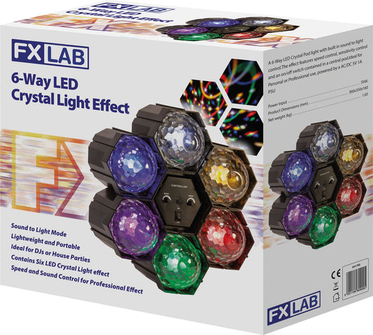 6 Way Multi-Coloured LED Crystal Effect Disco/Party Pod Light With Built-in Sound to Light Controller