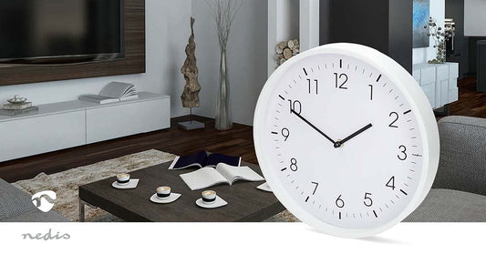 Nedis 22cm Wall Clock with Easy Read Numbers, Battery Powered - White
