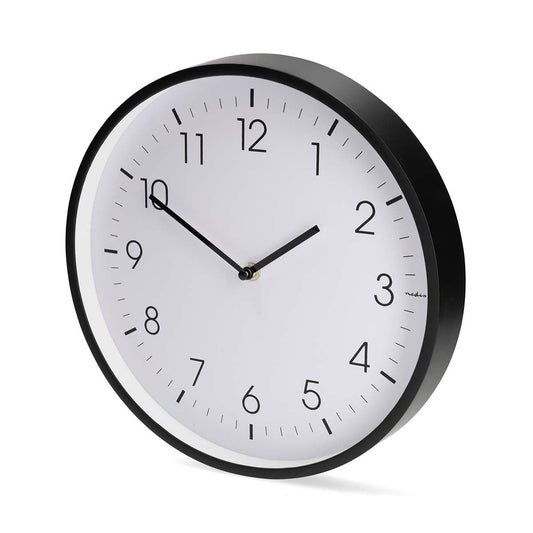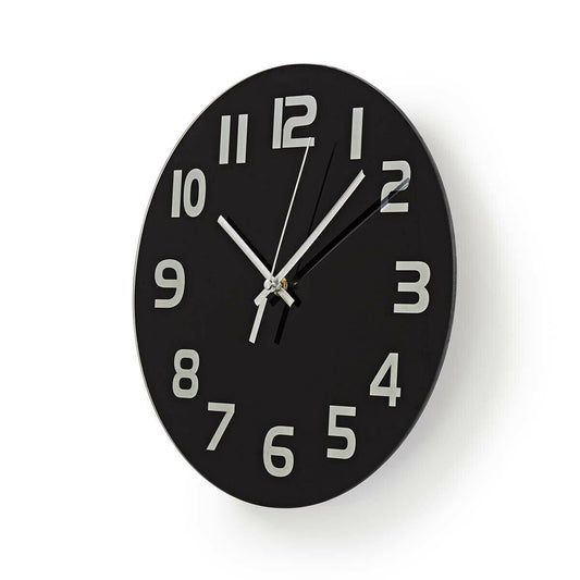 Nedis 30cm Wall Clock with Easy Read Numbers, Battery Powered - Glass Black