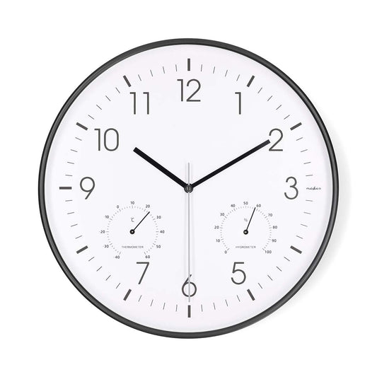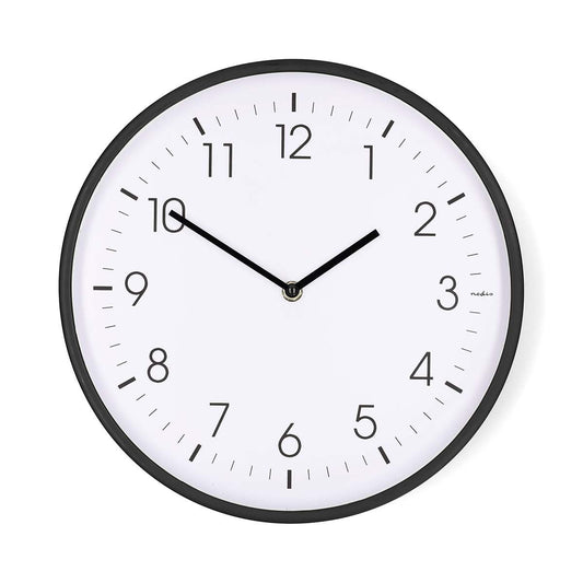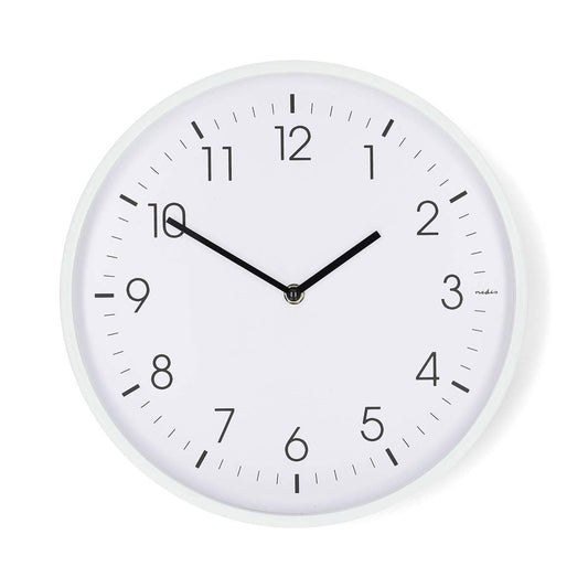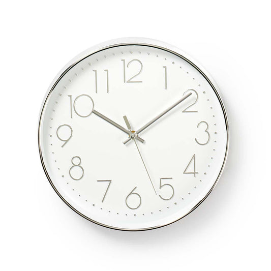 Nedis 30cm Wall Clock with Easy Read Numbers, Silent Movement, Battery Powered - Silver / White