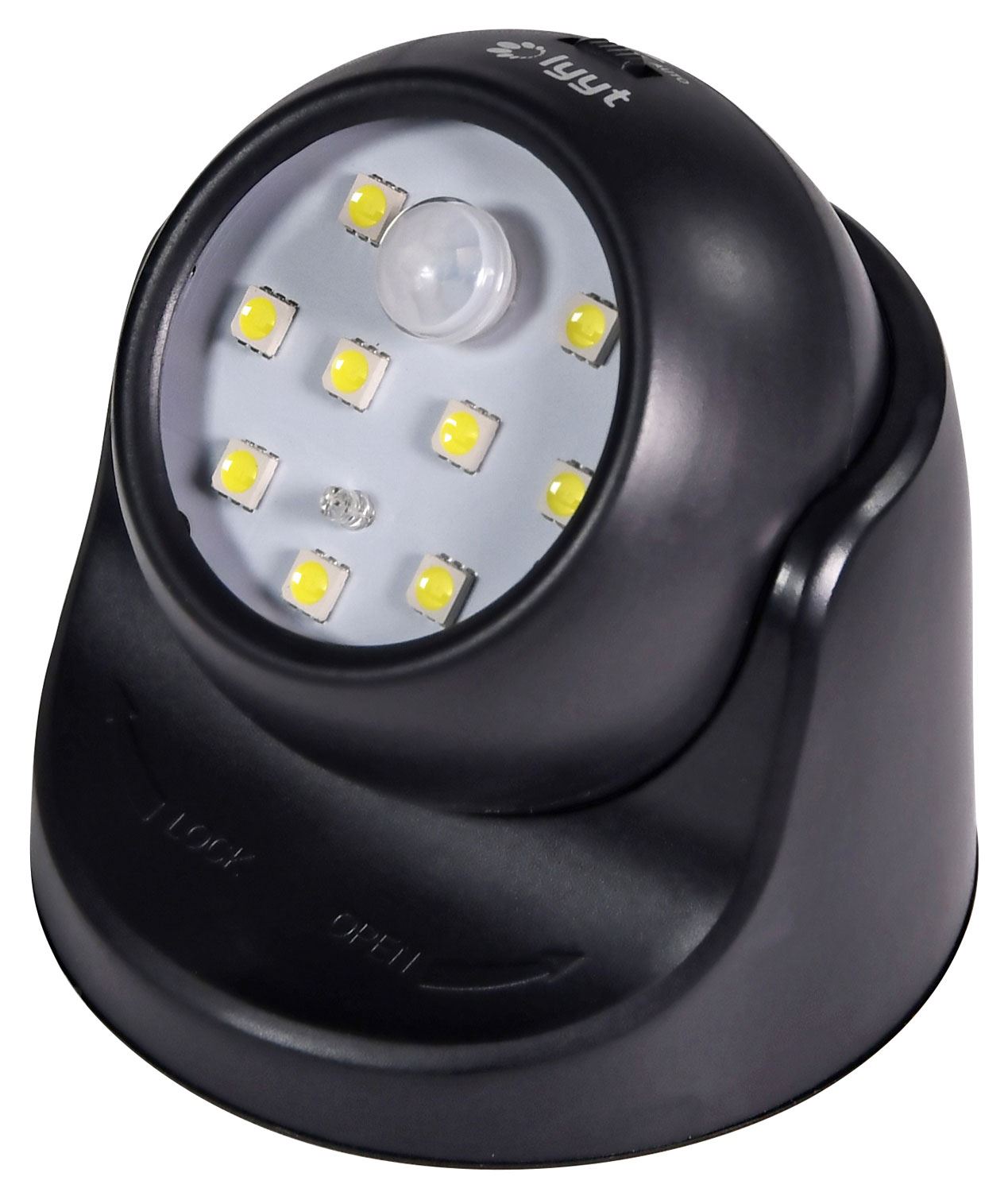 A small, portable LED light that runs on batteries and can be used to increase illumination and security in cramped areas. Equipped with a motion sensor that detects movement up to 3 meters away, it offers a broad coverage angle of 120 degrees and emits a bright LED light when the ambient light level is low. It is particularly suited for small-scale purposes like storage sheds, garages, lofts, and motor homes. Moreover, the device has a steady light mode and can be conveniently detached from its mount to be used as a