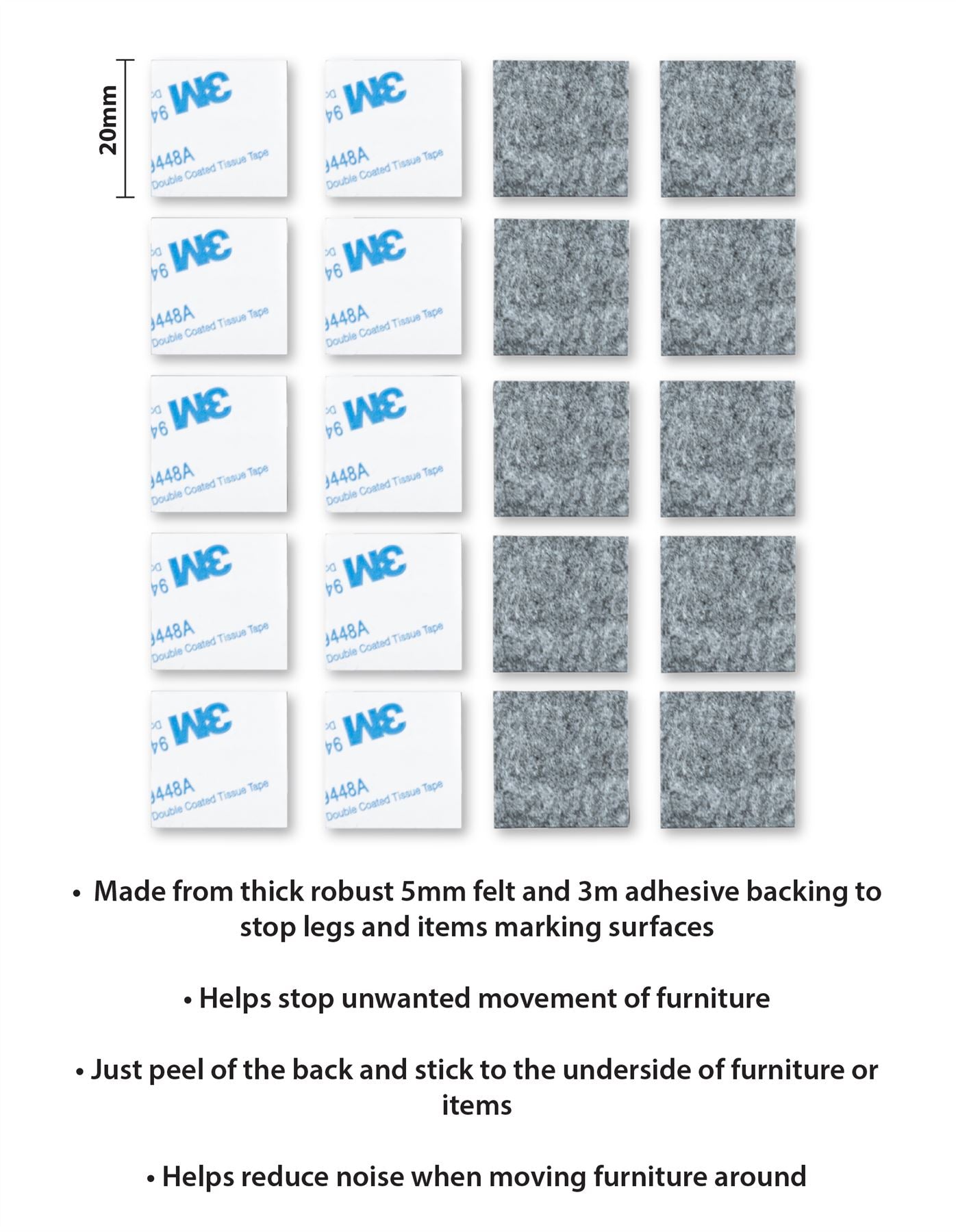 PROTECTS FLOORS: Made from thick robust 5mm felt and 3M adhesive backing to stop legs and items from marking surfaces.