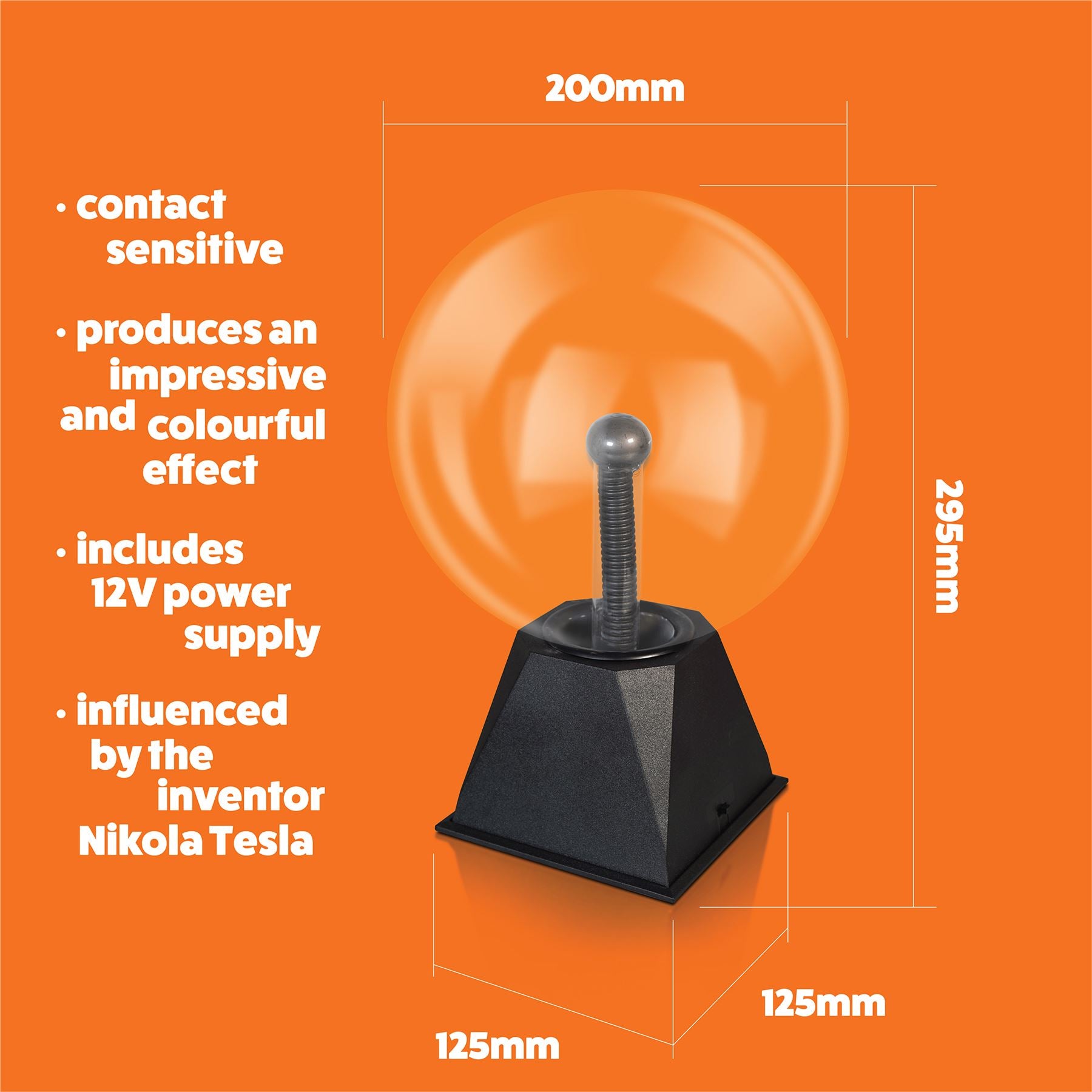 Add a spark to your entertainment quite literally with this8 inch/15cmPlasma Ball. It produces the image of an electric charge with exciting colourful visual effect. The ball responds to touch as the lightning stream follows your movement as the magnetic field is charged. Includes 12V power supply.
