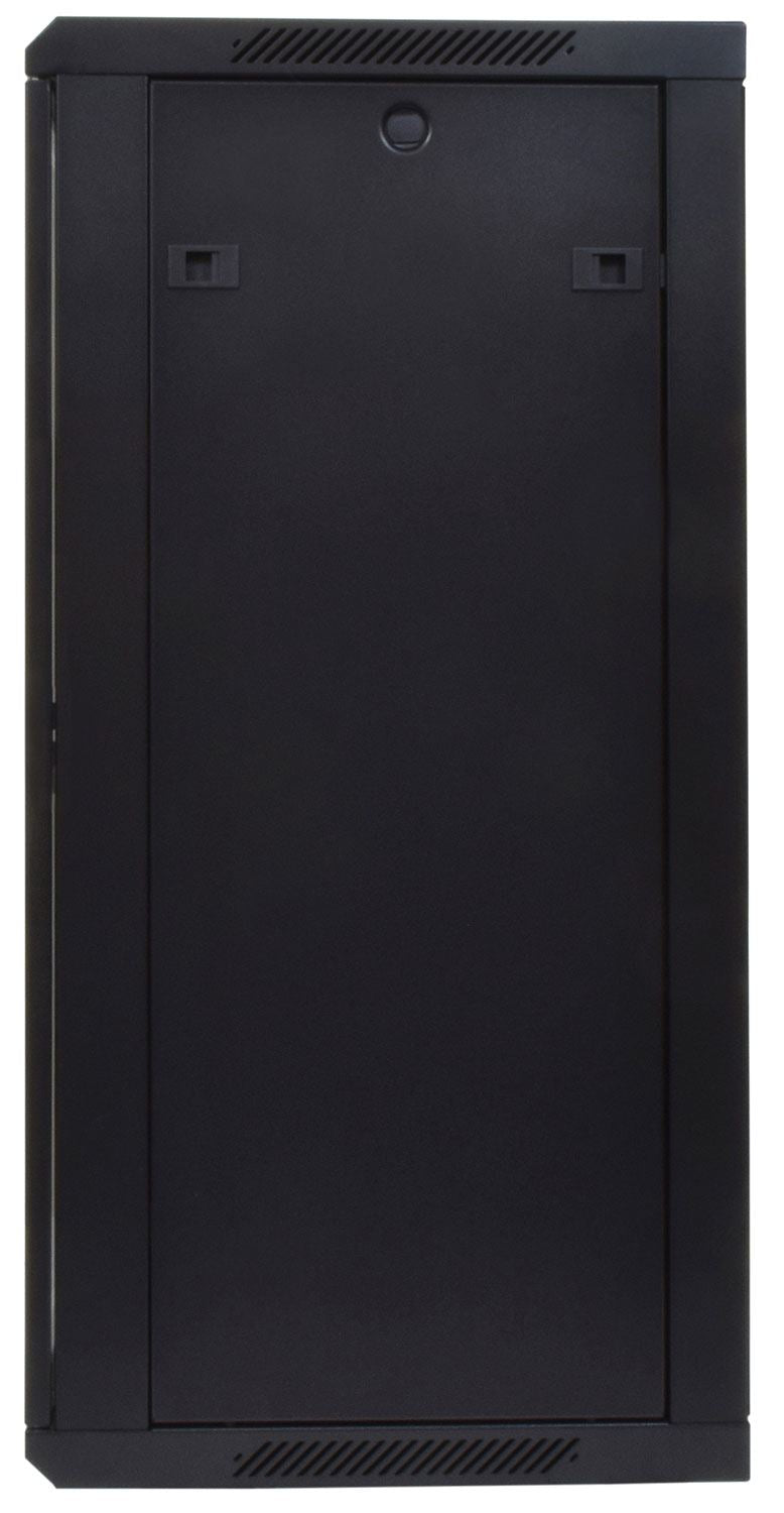 Cabinets for 19" rack-mount equipment with removable side panels and lockable front door. Constructed from cold-rolled steel with folded edges for strength and stability. Front and rear rack strip is supplied and mounted to rails inside the cabinet, enabling the mounting depth to be adjusted to accommodate equipment with overhanging fittings or to support the rear of heavy units. The top panel is vented for cooling and has a cut-out for mounting a cooling fan if required. The front door is removable and has a pane of 5mm tempered glass flanked by folded steel edge panels which can be mounted to open to either the left or right. The rear panel has fixing apertures for wall mounting or alternatively, the cabinet can be free-standing. Superbly designed, secure containment for professional rack installations.