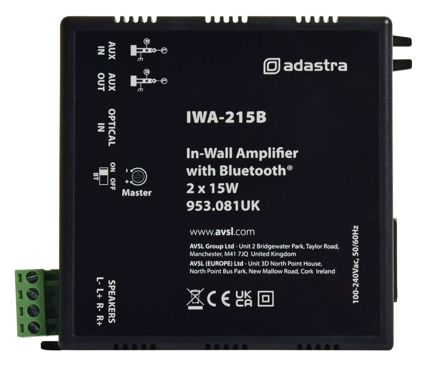 Adastra IWA215B In-wall Amplifier with Bluetooth 2 x 15W