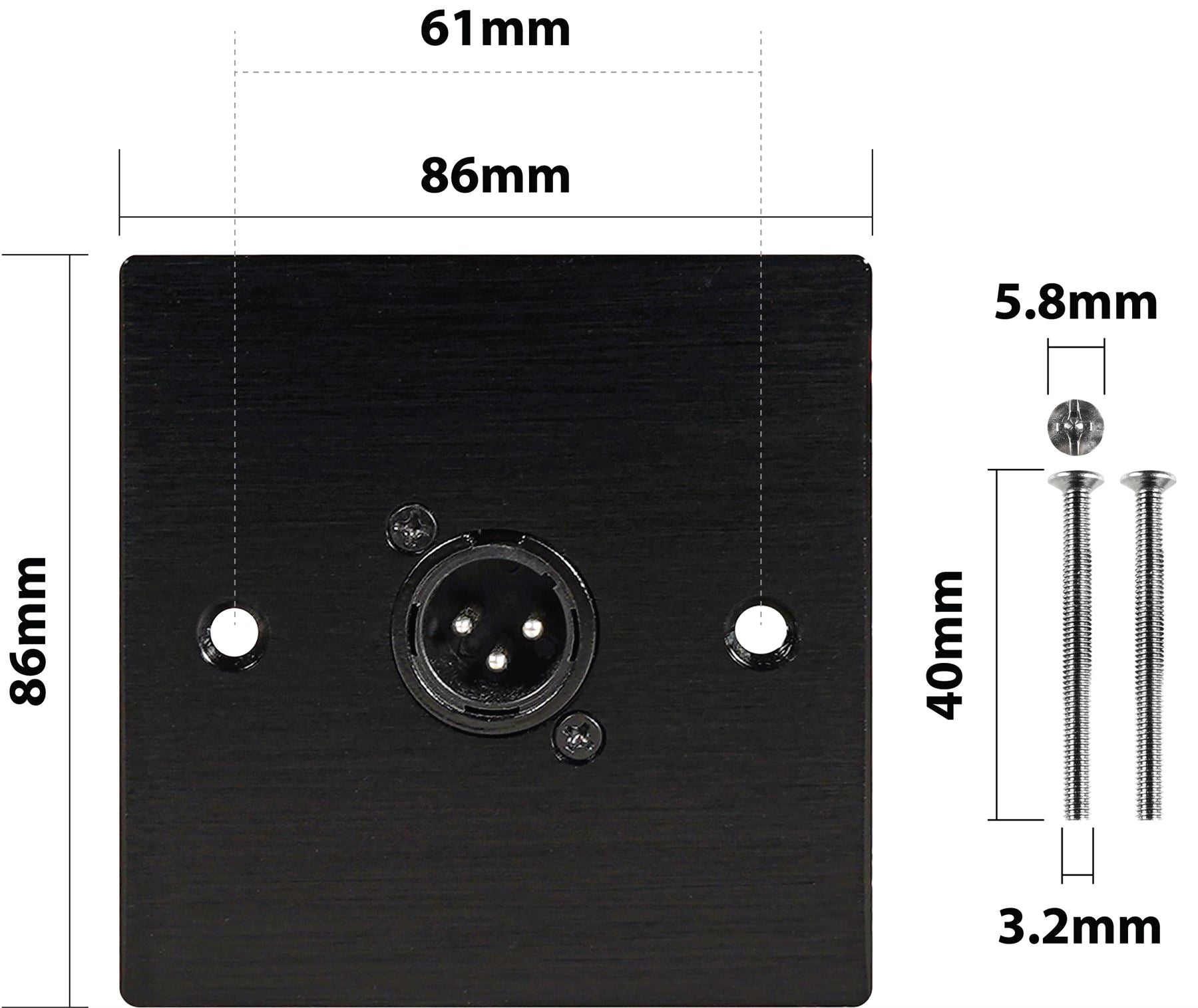 1 x Male XLR Wall Plate Metal