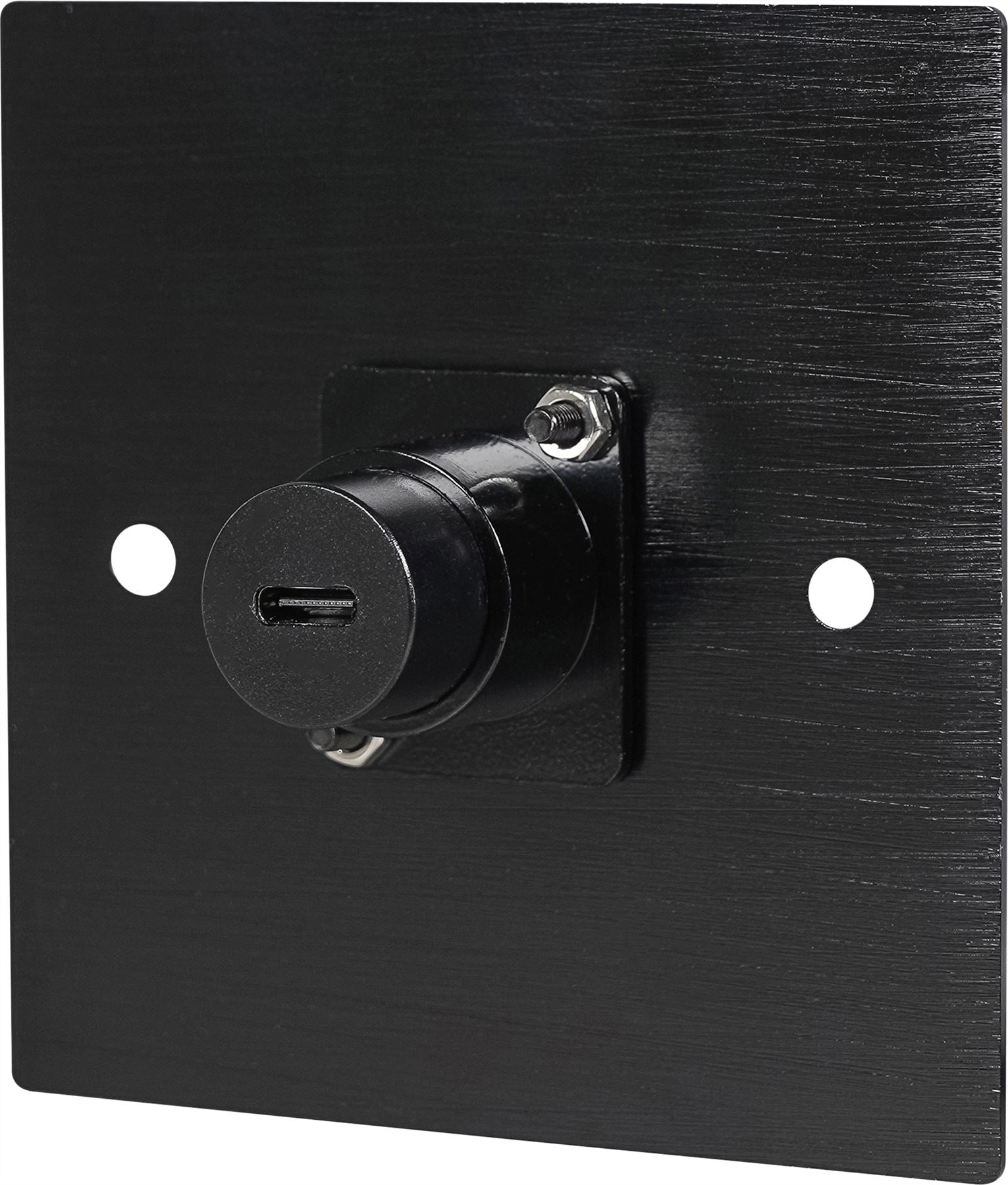 Black Wall Face Plate Electrical AV Slim Series 1 x USB C Socket Feedthrough Wall Plate Metal
