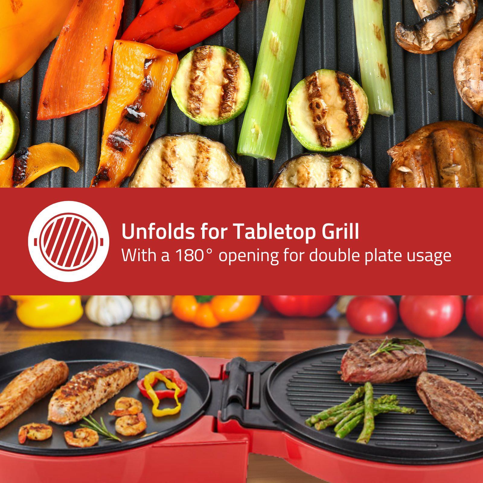Unfold the pizza maker to use it as a table grill with grill and flat baking plates.