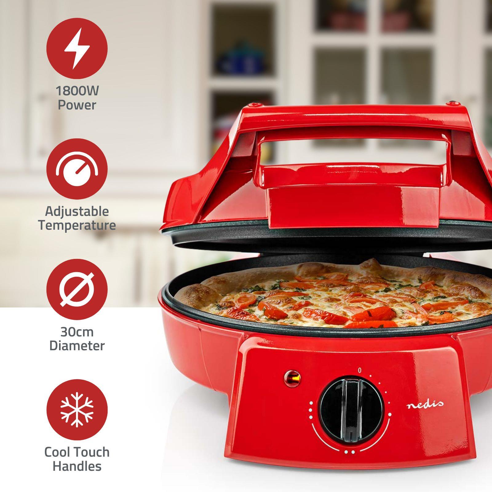 This Nedis multifunctional pizza maker allows you to prepare a delicious fresh or frozen pizza with a diameter up to 30 centimeters in less than 10 minutes. Besides baking fresh or frozen pizzas, this device is also ideal for making pancakes, omelets, quiches, flammkuchen.