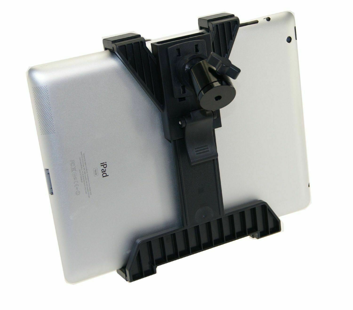 Ex-ProiPad/Tablet tripod mount system. Package includes universal tablet clamp which can hold 19cm/7.5" wide (The Shortest side of your tablet or Diagonal measurement max 13.5") - clamp has soft clamp sections which prevent scratching on both rear and side tablet mounted, clamp can accept tablets upto 23mm in thickness if required - Apple, Samsung, Asus, Google and others. Universal clamp mounts to the supplied ball head (CNC machined aluminium with chrome ball) this can then attaches to the supplied adjustable aluminium arm. Provides an excellent multi position stand for Desks, Bed, Sofa, Home, Boardrooms, Offices, Music Reading, Teachers, seminars, motivators, speakers, readings, lectures etc. Great for photographers, Social Media reviewers and more where screen needs to be viewed or linked to your DSLR/Camcorder. A wide variety of practical purposes. This package has a desk mount/surface mount clamp for the holder which can clamp to surfaces upto 2"/6m thick. 2 Stage with spring loaded joints you can adjust to any angle you want. Fully extended the arm can reach 35" and the tablet holder can be rotated through 360 Degree to obtain that all important angle you need.What's in the box ?1 x Ex-Pro Universal Multi-Angle stand. 1 x Ex-Pro Tablet Clamp.1 x Ex-Pro Mini CNC Ball Head.1 x Desk/Surface mount Clamp.1 x Slide Microphone Adapter (use angle with Microphones too!).1 x Clamp Microphone Adapter (use angle with Microphones too!).