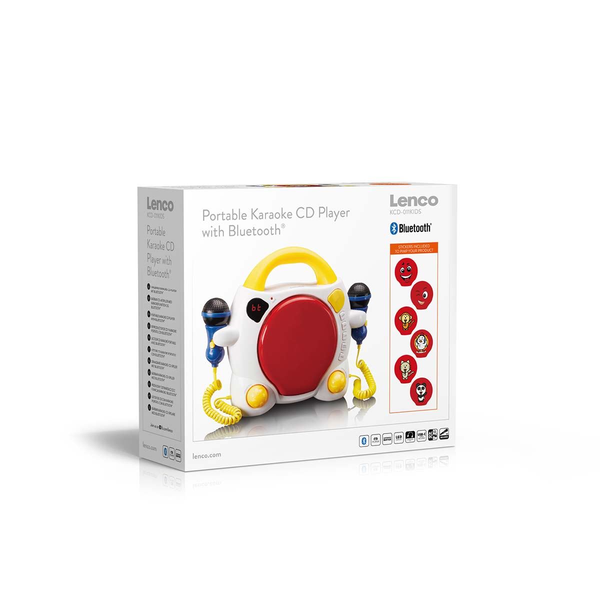 Let your children discover the joy of music and karaoke with theLenco KCD-011KIDS, a portable karaoke CD player specially designed for kids. In addition to allowing your child or children to rediscover their favorite CDs while singing along, the Bluetooth 5.0 technology provides the ability to play any song wirelessly by connecting to another device. The KCD-011KIDS is perfect for both home and on-the-go use, as it operates on both batteries and USB (USB-C cable included). And don't worry about never having peace and quiet: children also have the option to connect headphones thanks to the 3.5mm headphone jack.Double the karaoke fun with two microphones