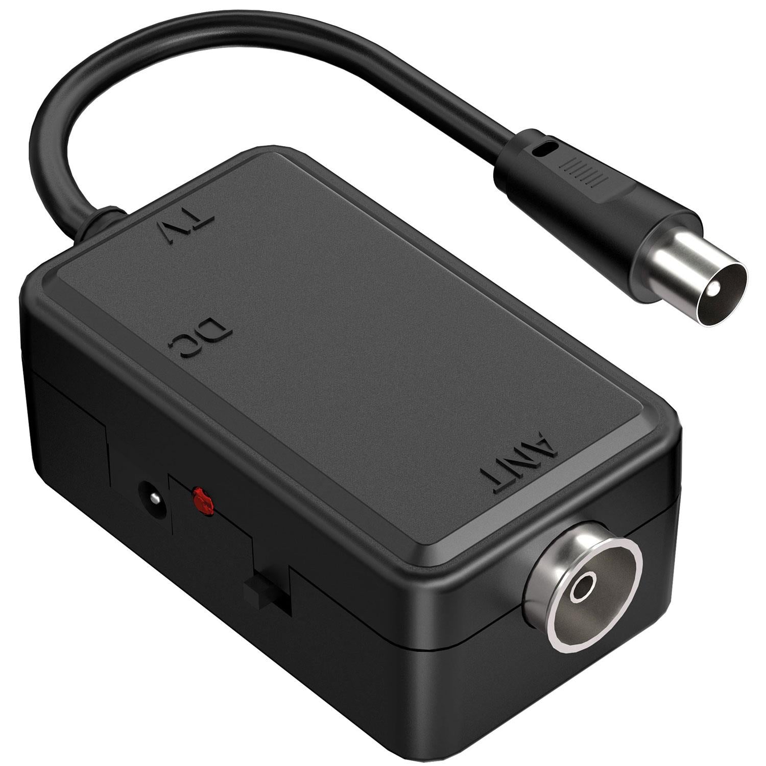 Integrated LTE signal filter avoids interference and channel loss from 5G & 4G mobile signals Simple to power using the included USB lead connected one of your TVs USB sockets Compact design with on/off switch and power LED