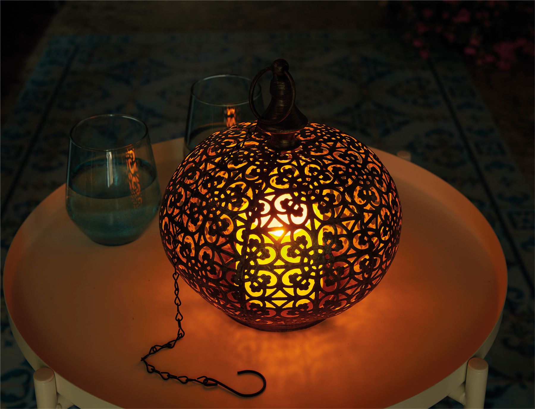 Moroccan Style LED Hanging Light Lantern USB Rechargeable Outdoor Warm White with Timer