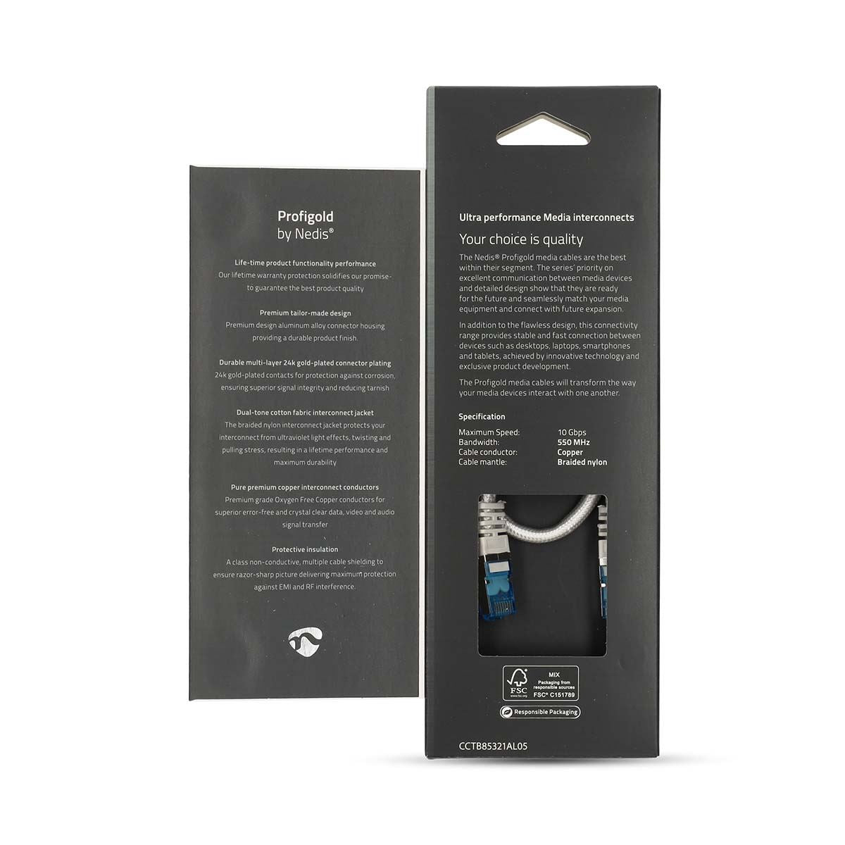 The cable is equipped with a snagless plug and the fully twisted copper cores are connected 'straight'. The sheath is halogen-free (LSZH). The braided nylon cable protects from both ultraviolet light effects and twisting or pulling stresses, resulting in a lifetime performance and maximum durability.