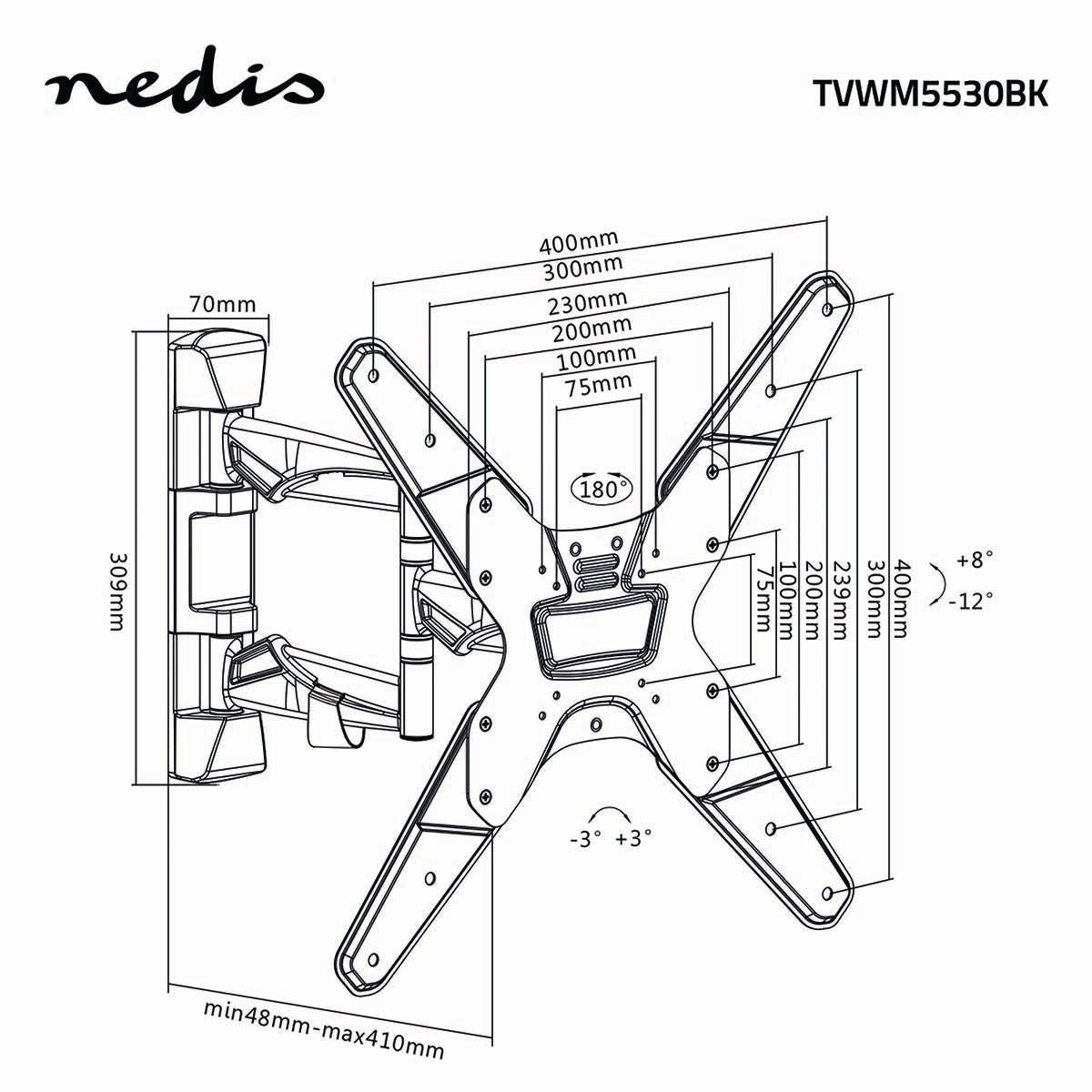 • Full motion design - three pivot points for up to 180° rotation and a wall distance of up to 410 mm.