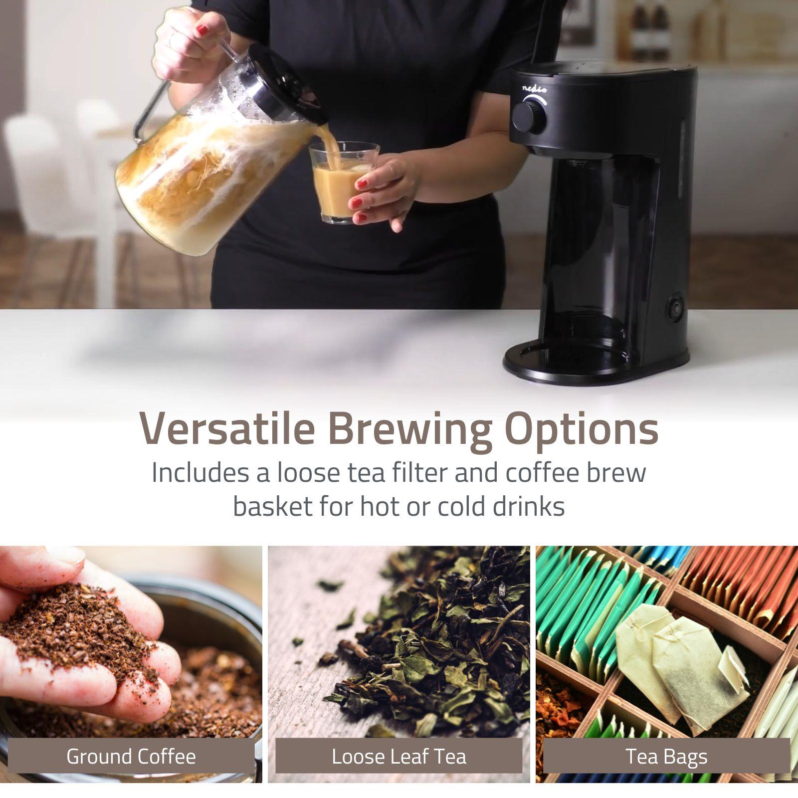 This Nedis 2-in-1 Iced Coffee and Ice Tea maker allows you to make your own home made delicious refreshing iced coffee or ice tea in only a few minutes. Cooling coffee or tea in the refrigerator not only takes a lot of time, but it can also cause it to oxidize, which affects the flavour. With this device, you brew directly into the glass jar for fresh, flavourful iced coffee or tea in just a few minutes.