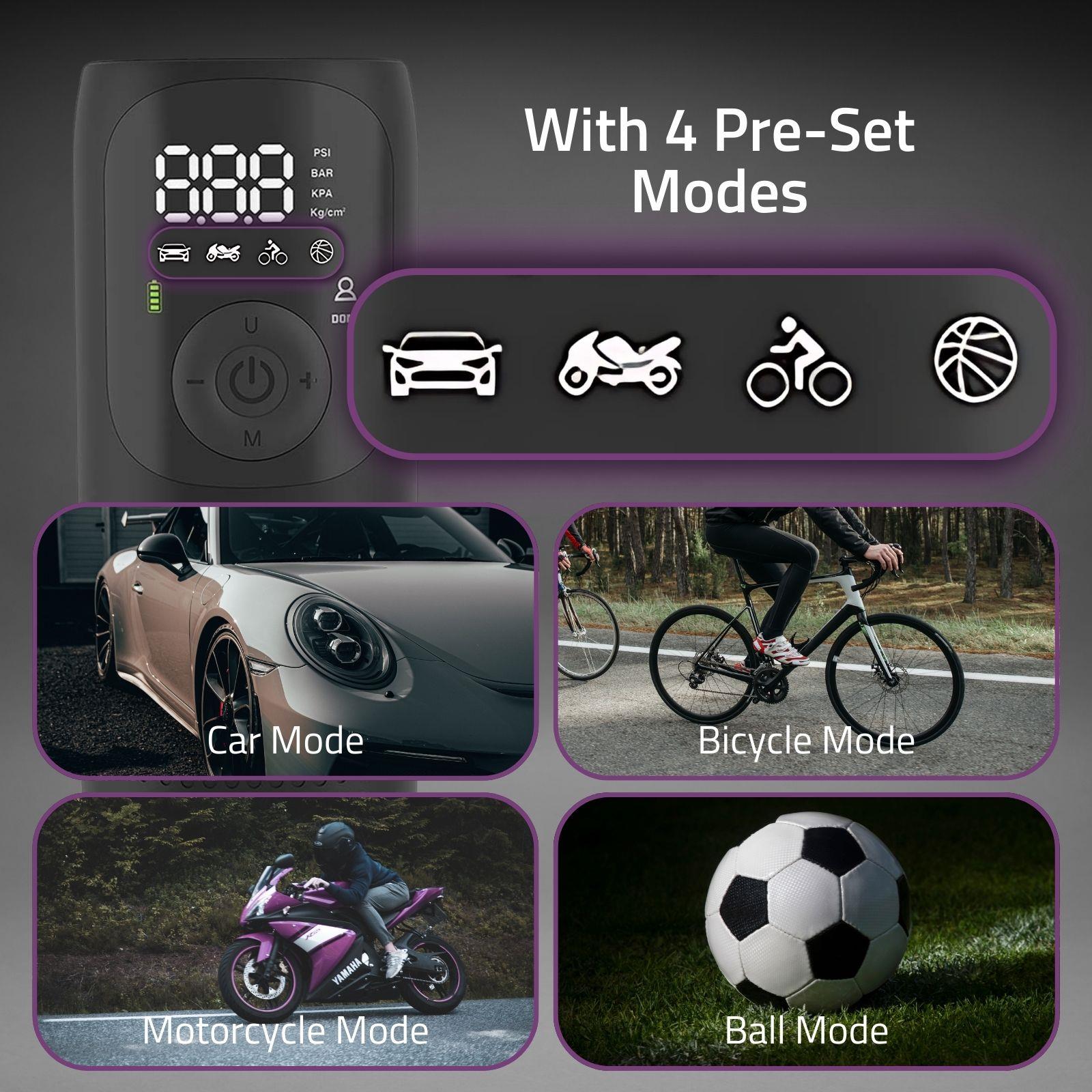 Equipped with a clear Digital LED display and a built-in LED light, this compressor ensures precision and visibility, even in the dark. With a powerful inflation capacity of up to 10.3 bar (150 psi) and an impressive accuracy of 0.1 bar, it delivers reliable results every time.