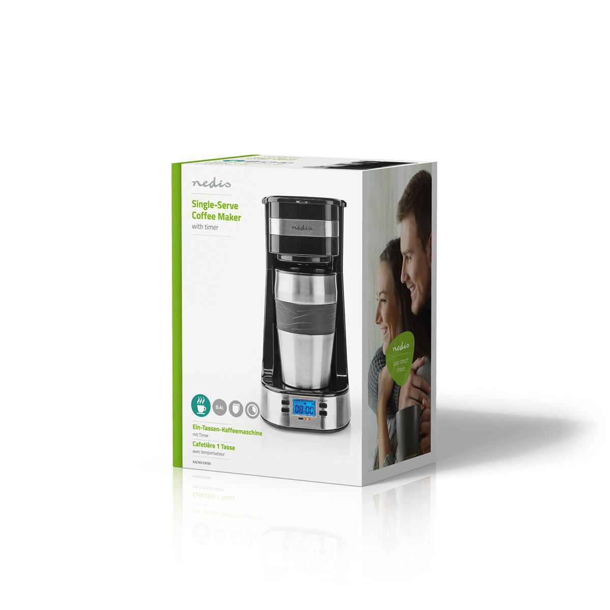 This Nedis single-serve coffee maker fits tight morning schedules just perfect.