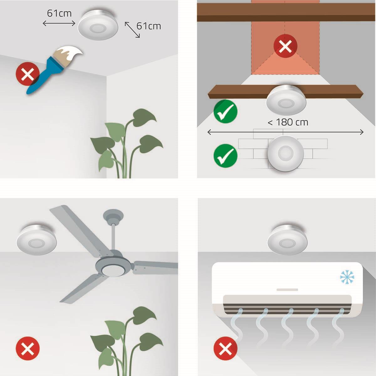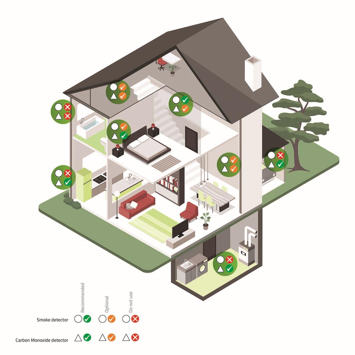 The new generation optical smoke sensor responds even faster to fire, gives less false alarms, and is very environmentally friendly. Besides, it has a high-quality electrochemical sensor that constantly measures the concentration of carbon monoxide in the air. Carbon monoxide is deathly, odourless, and invisible, which makes it undetectable without a detector. This dangerous gas is caused by incomplete combustion and can occur near your central heating boiler, geyser, or chimney. It complies with the needed EN 14604 and EN 50291 European standards.