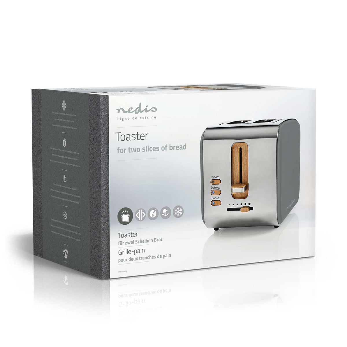 This stylish, soft touch, powerful 900 Watt Nedis Toaster works just as good as it looks: The extra-wide slots on this toaster make sure that, whether it’s pre-sliced bread, a hand-cut loaf, a bagel or a muffin, it will always pop-up perfectly toasted. Combining stainless steel, wood and rubber paint finishing makes this toaster a stylish, durable and easy-to-clean addition to your kitchen.