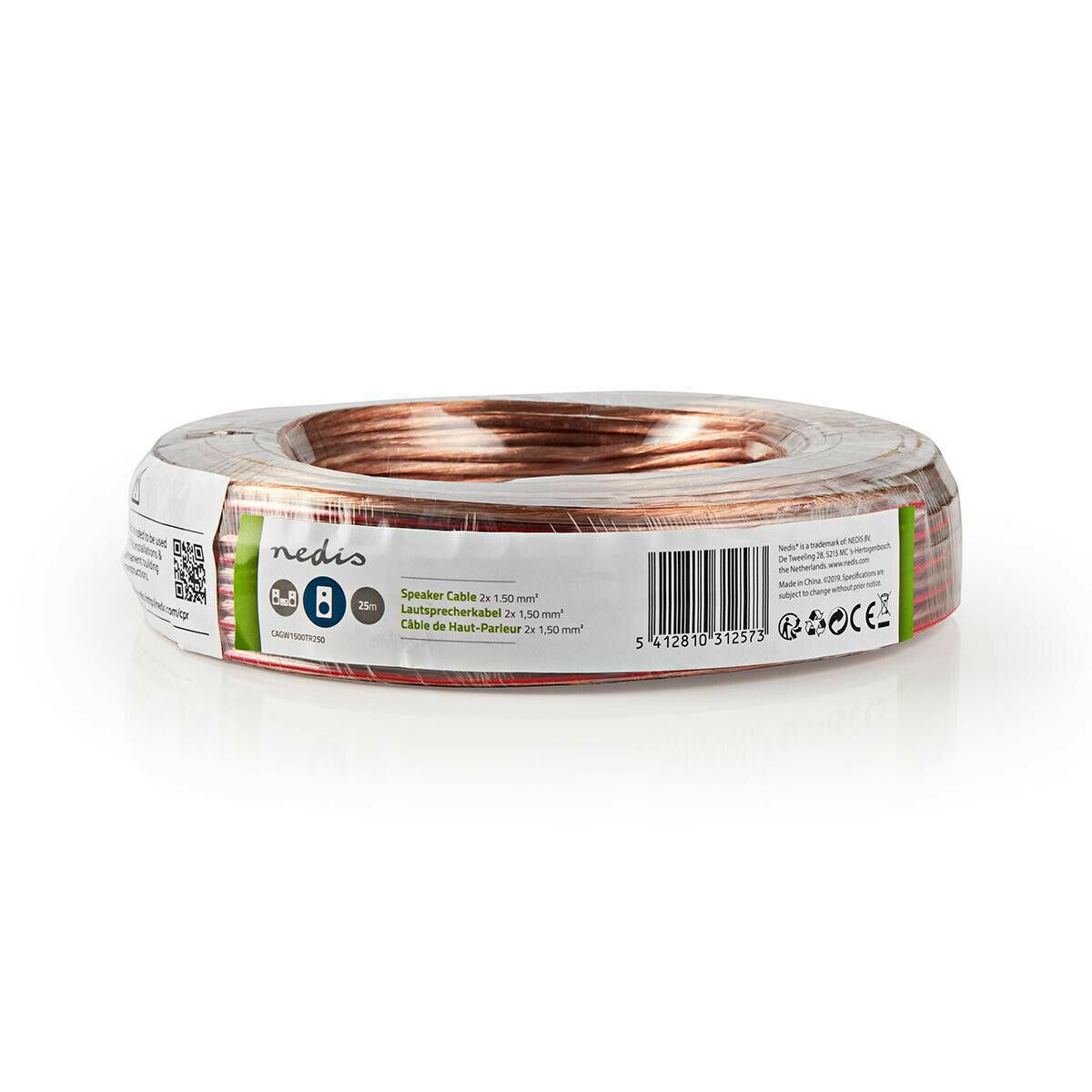 Nedis Speaker Cable | 2 x 1.50 mm² | CCA | 25.0 m | Round | PVC | Transparent | Wrap