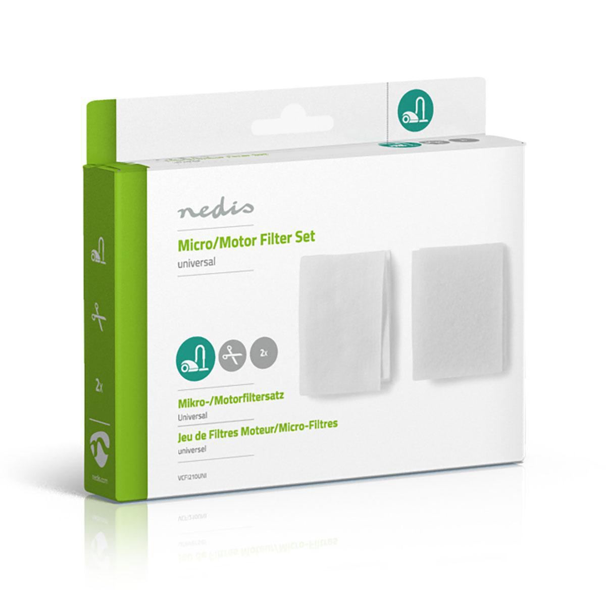 Universal filter set for vacuum cleaners consisting of a micro and a motor filter. They can be cut in any size, so they are suitable for any type of cleaner.