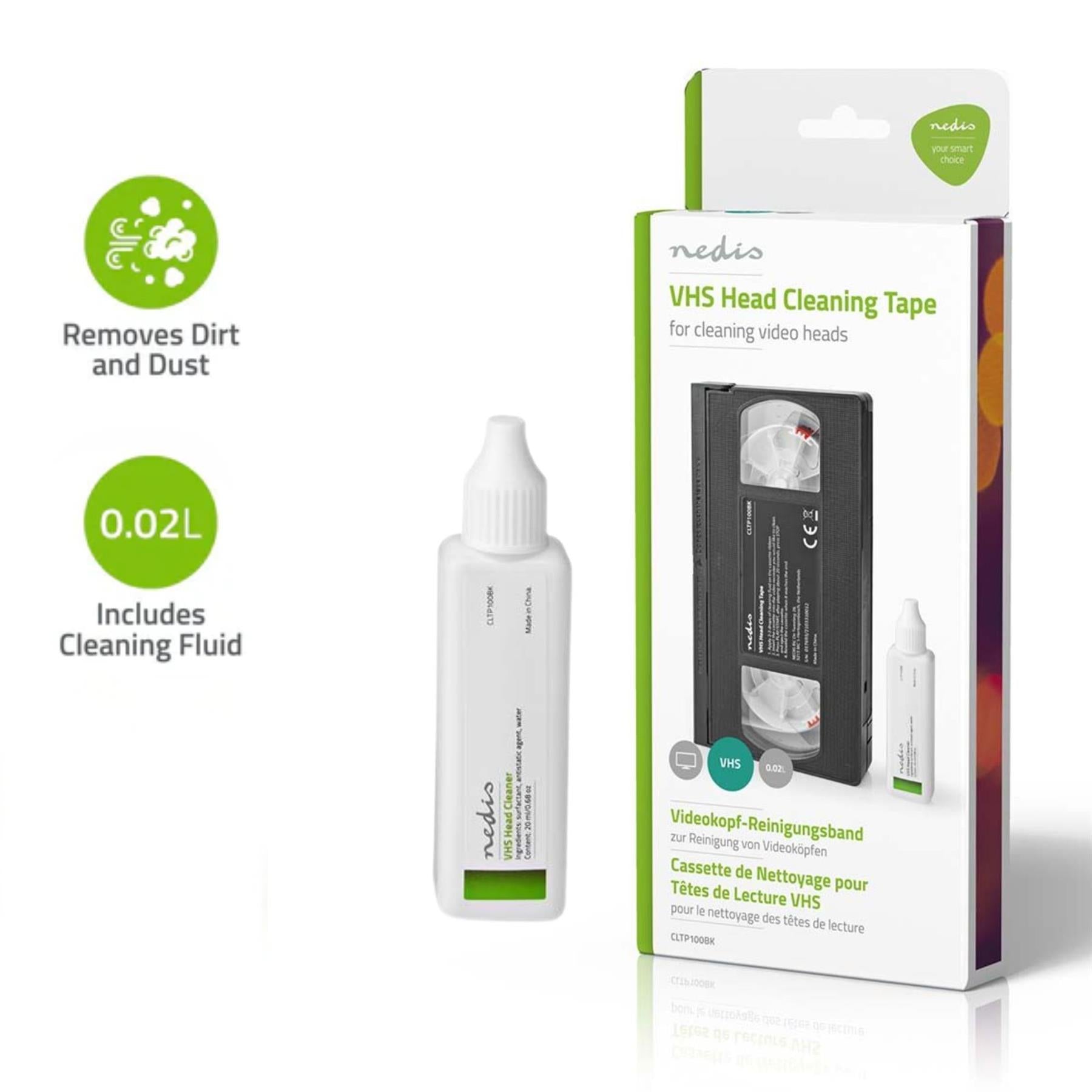 This Nedis VHS head cleaning tape ensures your video recorder is working optimally and lasts longer. It is essential to keep your VHS heads clean in order to enjoy clear pictures and sound. The 20 ml bottle of high-quality cleaning fluid offers a safe and effective way to continue to enjoy your movies.