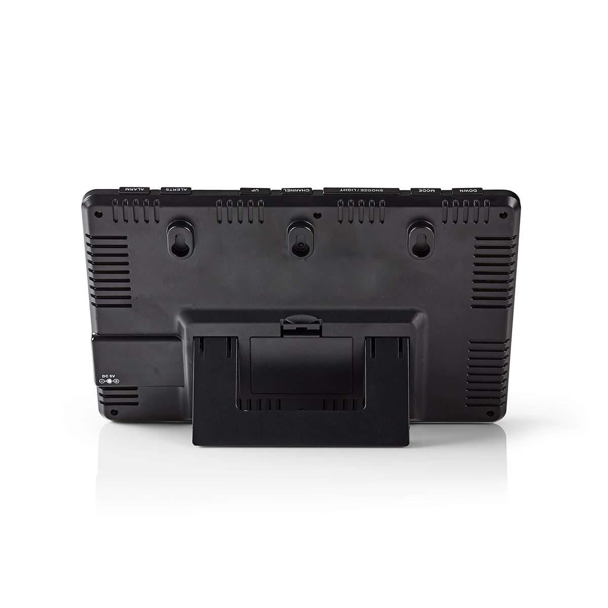 It offers time and date information, an alarm clock with snooze function and six levels of information about the current and predicted weather including humidity, outdoor temperature, indoor temperature and comfort level.