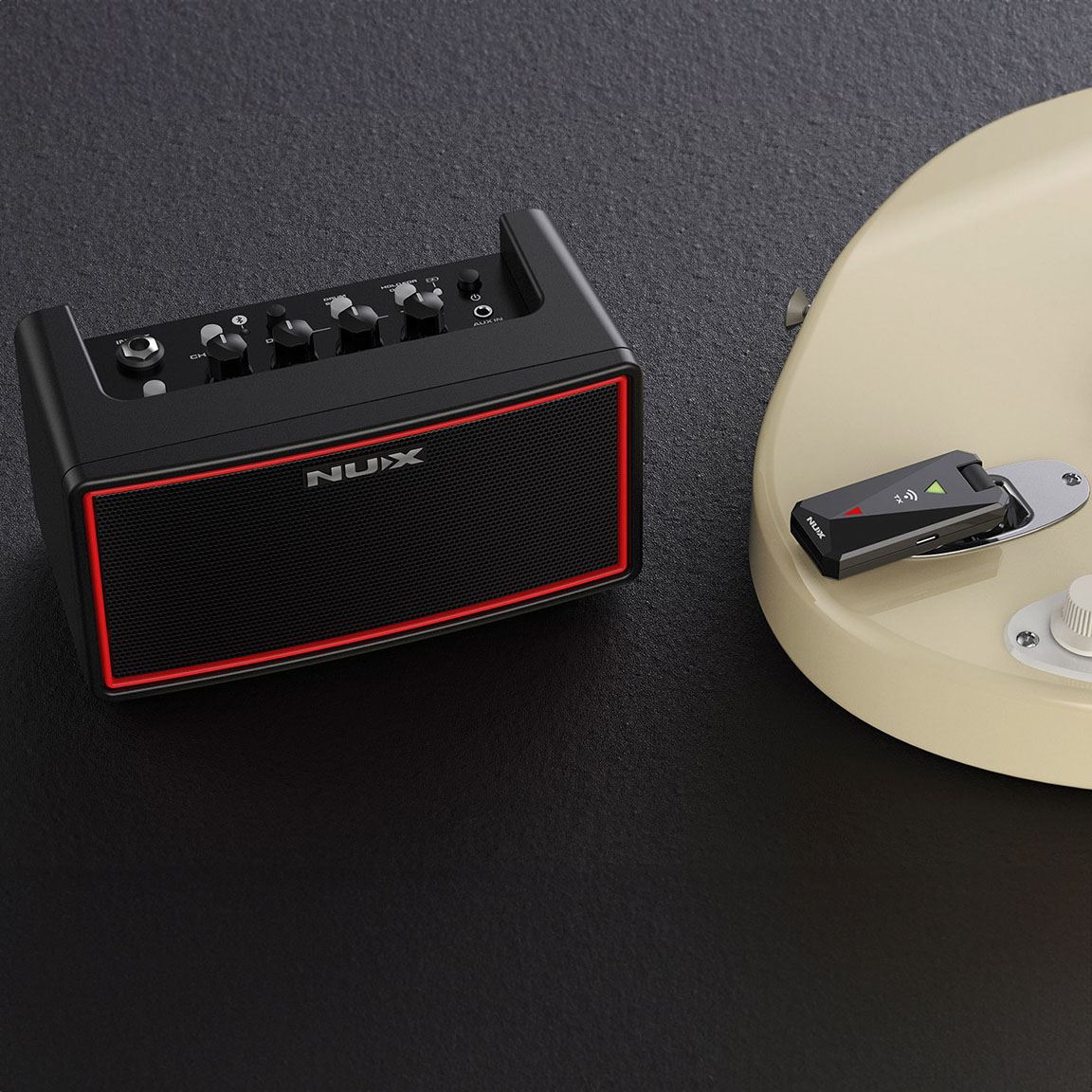 Dedicated guitar and bass amp and speaker presets are provided by NU-X's proprietary TSAC high definition modelling, along with an acoustic simulator and a full compliment of effects for all genres. A plug in 2.4GHz wireless guitar transmitter enables full wireless freedom and is rechargeable directly from the amplifier's input jack.