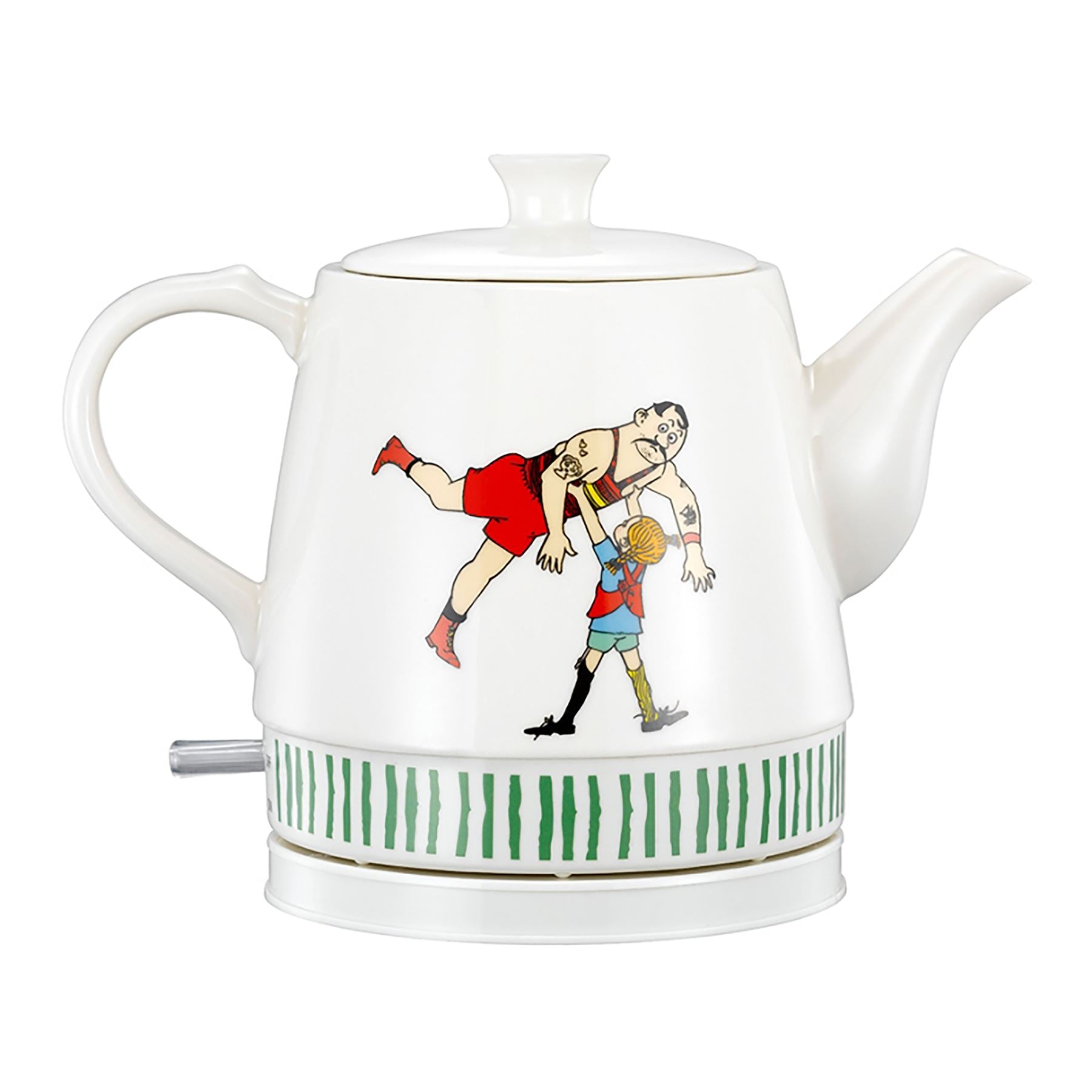 The white Pippi cordless electric kettle is made of ceramic and has a motive that triggers nostalgic thoughts.