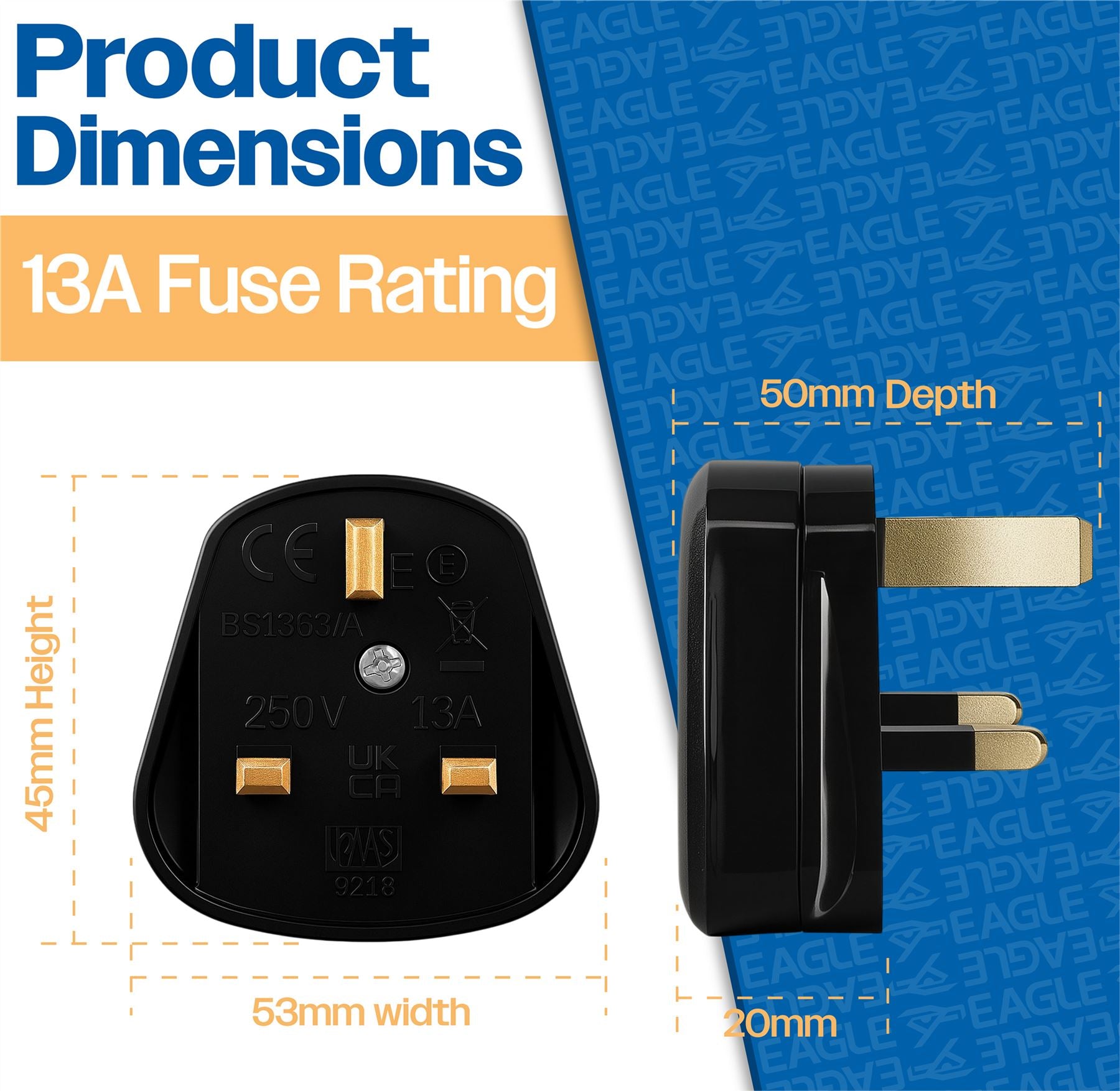 13A Rated 3-pin UK mains plugs manufactured from nylon and urea The plugs have a quickfit type cord grip BS1363 approved (fitted with BS approved 13A fuse) Black