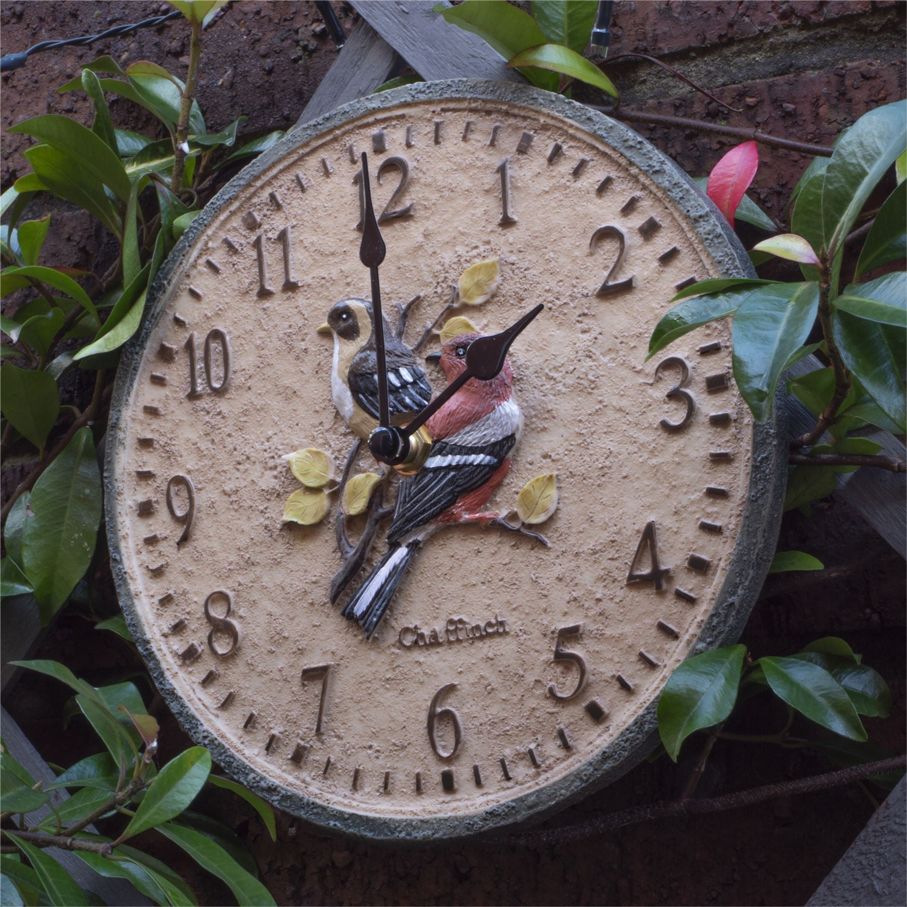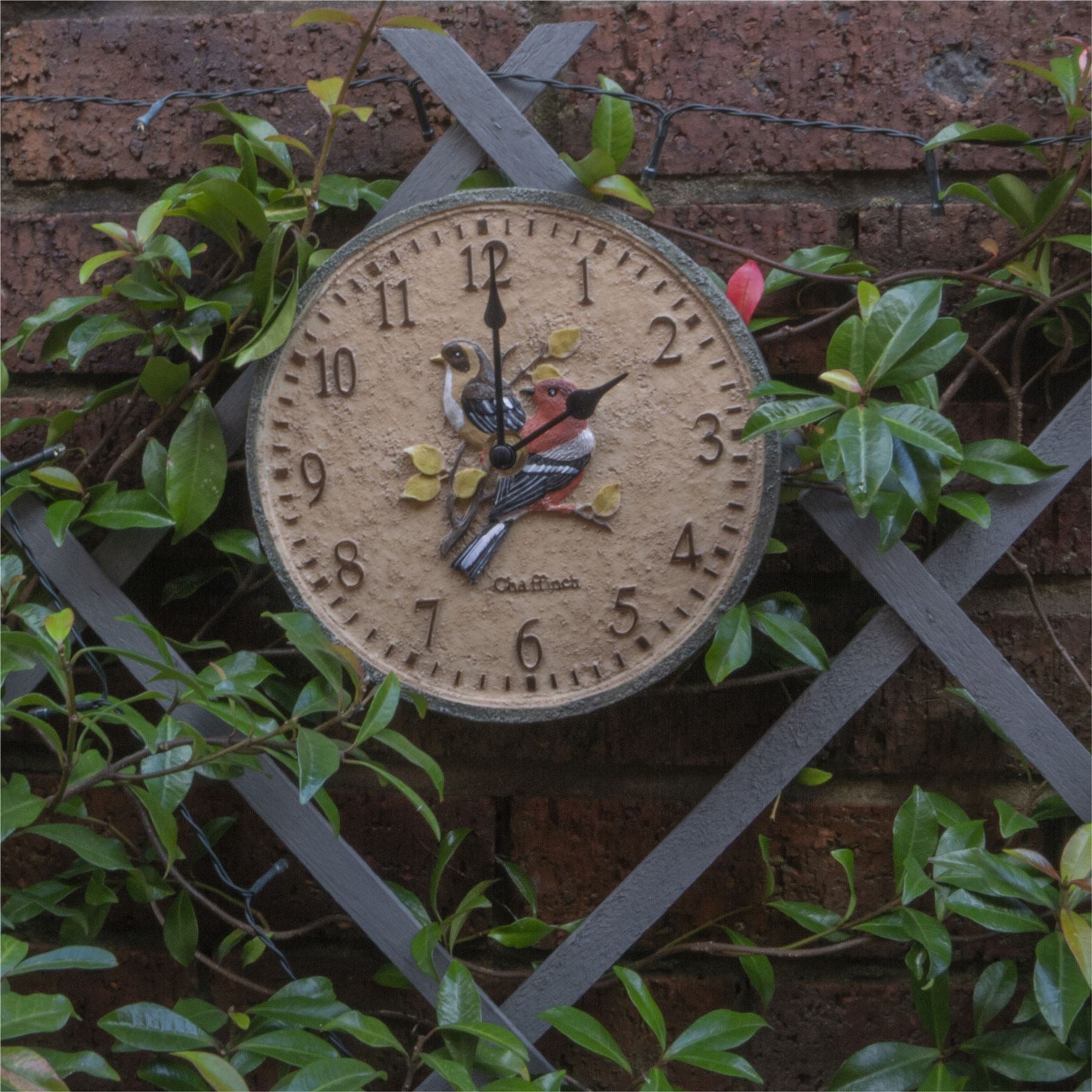 This fabulous decorative outdoor wall clock would make a welcome addition to any garden thanks to its charming chaffinch design. The clock is hand-painted and made from polyresin making it long-lasting and suitable for the rigours of outdoor use. Supplied with a fitted metal hanging bracket meaning it is extremely quick and easy to mount on outdoor walls, fences, summer houses, conservatories and sheds. Sit back, enjoy the beauty of your garden and literally watch time go by. The clock requires a 1x AA battery (not supplied).