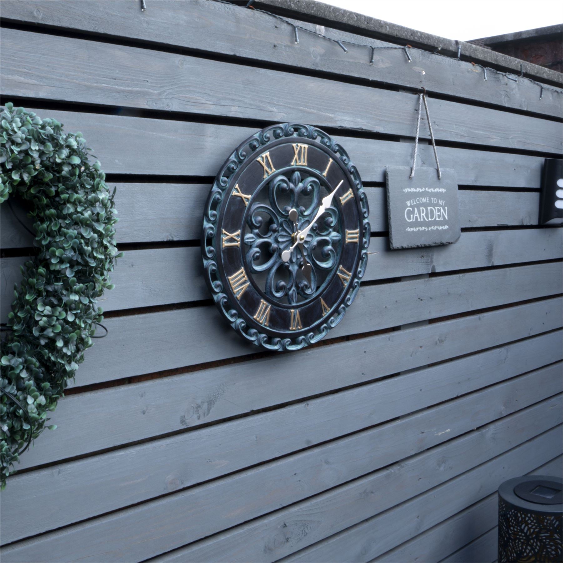 This fabulous decorative outdoor/indoor wall clock from St Helens Home and Garden would make a welcome addition to any garden thanks to its charming open-faced, weathered design. The clock is hand-painted and made from polyresin making it long-lasting and suitable for the rigours of outdoor use. It is supplied with a key slot making it extremely quick and easy to mount on outdoor walls, fences, summer houses, conservatories and sheds. Sit back, enjoy the beauty of your garden and literally watch time go by. The clock requires 1x AA battery (not supplied).